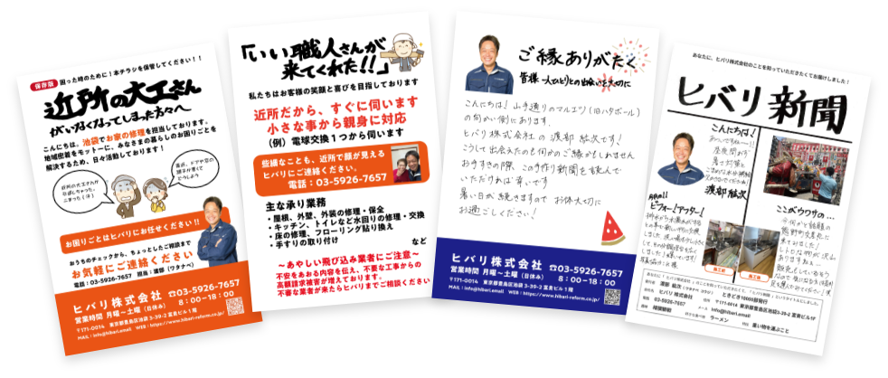 当社はチラシや口コミなどを中心とした集客を行っています。